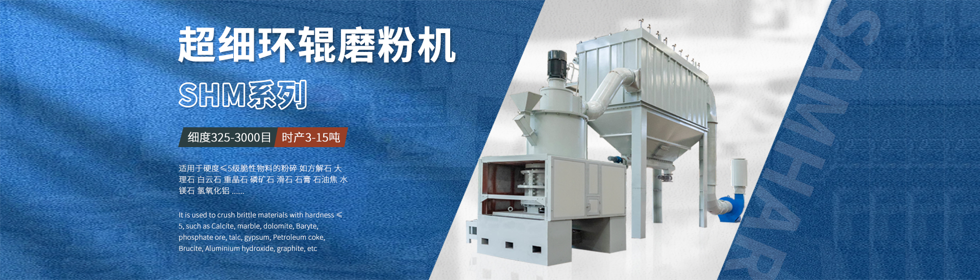 龍巖市山和機(jī)械制造有限公司,座落于龍巖市新羅區(qū)龍州工業(yè)園區(qū),是一家生產(chǎn)微米級(jí)粉碎機(jī)械設(shè)備的國家級(jí)高新技術(shù)企業(yè)。公司擁有專利技術(shù)30余項(xiàng),擁有一批富有經(jīng)驗(yàn)的技術(shù)及管理人才。山和依托二十多年礦山機(jī)械設(shè)備的制造基礎(chǔ),山和粉碎設(shè)備廣泛應(yīng)用于重鈣、輕鈣、灰鈣、納米鈣、膨潤土、硅灰石、水鎂石、磷礦等非金屬礦行業(yè);白炭黑、石油焦、樹脂、硫酸鈣、硫酸鈉、發(fā)泡劑、硬脂酸鋅等化工行業(yè);淀粉、白糖、中草藥等食品行業(yè)...